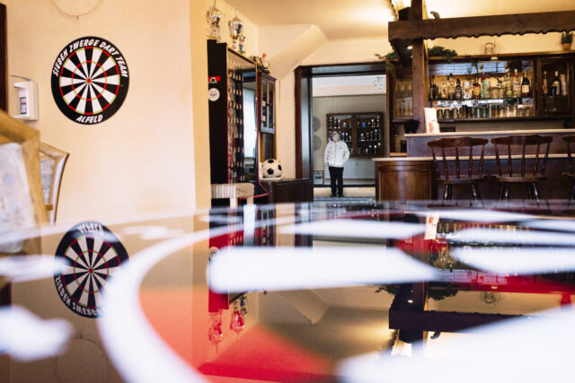Bei aller Tristesse im geschlossenen Vereinsheim, so ganz ohne Dart geht es doch nicht. „Wir spielen im Augenblick online, jeder für sich zu Hause. Da haben wir eine Kamera auf unser Dartboard gerichtet und sind über die My-Darts-Tournament-App verbunden. Wir trainieren auch und bieten Turniere an. Aber es spielen längst nicht alle mit. Für unsere Oldies ist das gar nichts. Und die Jungen haben teilweise keine Ausstattung.“ Was am allermeisten fehle, sei das persönliche Miteinander, alles, was das Vereinsleben eben ausmache, sagt Schmidt und schließt wieder ab. Für wie lange, das weiß derzeit niemand.