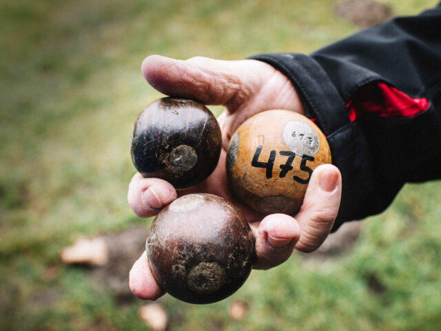 Spielgerät: Früher waren es Lehmkugeln (Kluten), heute kommen mit Blei gefüllte Hartholzkugeln zum Einsatz, die zwischen 190 und 475 Gramm wiegen.
