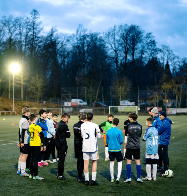 An diesem Dienstagabend übernimmt er die Aufwärmübung am Spielfeldrand. Mehmet Emin Miisoglu, schwarze Wollmütze zum dunkelblauen Trainingsanzug, legt einige neongelbe Hütchen auf den Plastikrasen. Dann ruft er zwei Spieler, die die Jungs als Anführer in zwei Gruppen ins Laufen bringen sollen. Miisoglu ist ein ruhiger Trainer, sagt während der Einheit und auch beim Rest des Trainings nur wenige Worte. Hier mal ein Hinweis, wie ein Spieler besser zum Ball kommt, dort mal eine kleine Erinnerung, auch das Dehnen ernst zu nehmen.