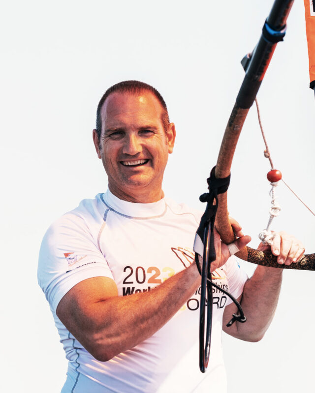Für seine Eltern freut sich Manchon, dass die Rennumgebung nicht nur etwas für Profis ist. Denn die WM ist in gewisser Weise eine Verbindung von Leistungs- und Breitensport. Für die Teilnahme braucht es, anders als bei anderen Rennklassen, keine Punkte aus vorherigen Rennen. Die Raceboards sind, vereinfacht gesagt, bei allen Bedingungen nutzbar. Sie sind länger als andere Windsurfbretter, und dank eines ein- und ausklappbaren Schwertes ist auch das Fahren gegen den Wind bei allen Windbedingungen möglich. So können aufstrebende Nachwuchssportler:innen, die irgendwann in die Olympiaklasse wechseln wollen, aber auch ehemalige Leistungssportler:innen, die nicht ad hoc aufhören wollen, bei fast allen Bedingungen gegen die aktuellen Topsportler antreten und ihre Kräfte, ihr Brettgefühl und ihr taktisches Können messen. „Damit haben wir ein ganz breites Feld an Startenden – das finde ich sehr interessant“, sagt Fahrersprecher Lars Deiterding, der selbst seit dreißig Jahren erfolgreich an Welt- und Europameisterschaften teilnimmt.