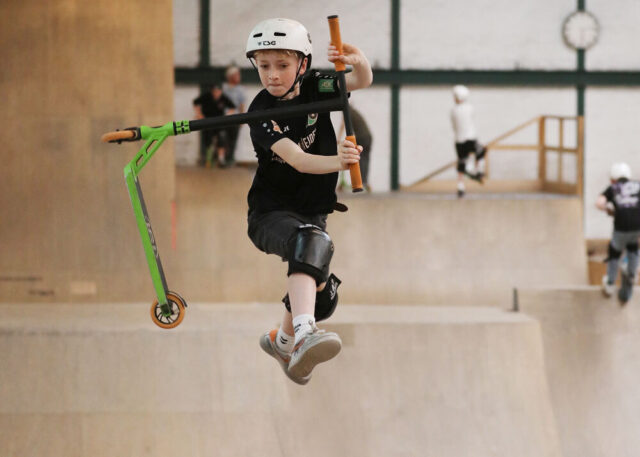 In der 2019 eingeweihten Skatehalle Gleis D in Hannover vollführen Kinder und Jugendliche mit ihren Stunt-Scootern halsbrecherische Manöver. Der Verein zur Förderung für Jugendkultur und Sport bietet den jungen Menschen aus allen Gesellschaftsschichten hier eine Heimat für diese Trendsportart. Allein die Haupthalle ist 1.500 Quadratmeter groß, daneben gibt es noch eine kleine Halle und diverse Rampen im Freien. Mehr als 600 Personen gehören dem Verein mittlerweile an – und nicht alle können sich die Ausrüstung leisten. Die wenigen Leih-Scooter des Vereins sind jedoch über die Zeit kaputtgegangen. Die NP-Sportstiftung stellt deshalb 2.000 Euro für zehn neue Sportgeräte zur Verfügung.◼